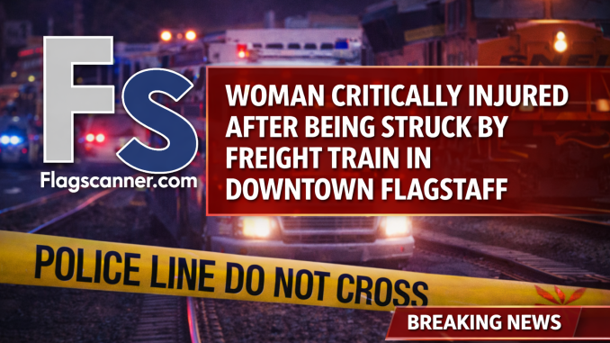 FLAGSTAFF, Ariz. — A woman in her 30s was critically injured early Friday morning after being struck by a passing freight train in downtown Flagstaff, according to witness reports.