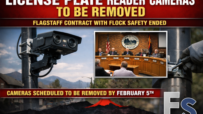 FLAGSTAFF, Ariz. — The Flagstaff City Council has formally ended the City’s contract with Flock Safety, bringing an end to the use of automated license plate recognition (ALPR) cameras within city limits.
