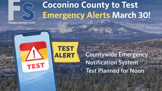 FLAGSTAFF, Ariz. — Coconino County Emergency Management (CCEM) will conduct a countywide test of its Emergency Notification System on Monday, March 30 at 12 p.m., as part of ongoing disaster preparedness efforts.
