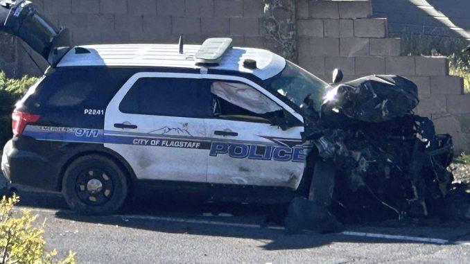 FLAGSTAFF, Ariz. — September 20, 2025 – A tragic two-vehicle collision early Saturday morning left one man dead and sent a Flagstaff Police Department officer to the hospital.