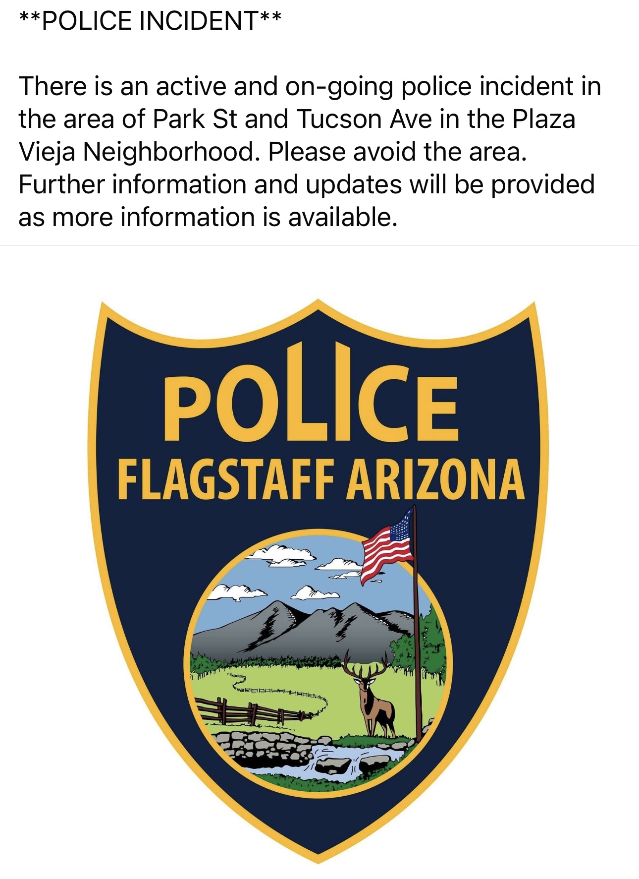 No injuries were reported during the incident. The Flagstaff Police Department thanks the community and residents of the Plaza Vieja neighborhood for their patience and cooperation, which were instrumental in bringing this situation to a safe resolution